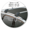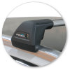Clamps onto flush roof rail. Pins locate on inside of rail.