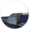 Clamps onto flush roof rail. Pins locate on inside of rail.